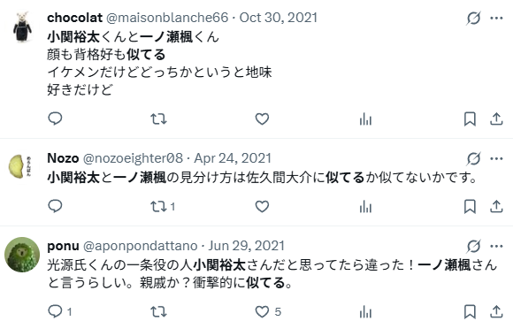 この記事では一ノ瀬楓と小関裕太が似ているかについて調査していきます。