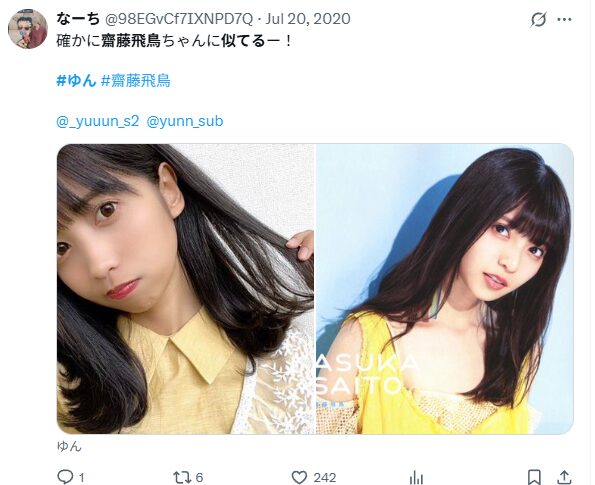 齋藤飛鳥さんとゆんさんが似ていると話題です!